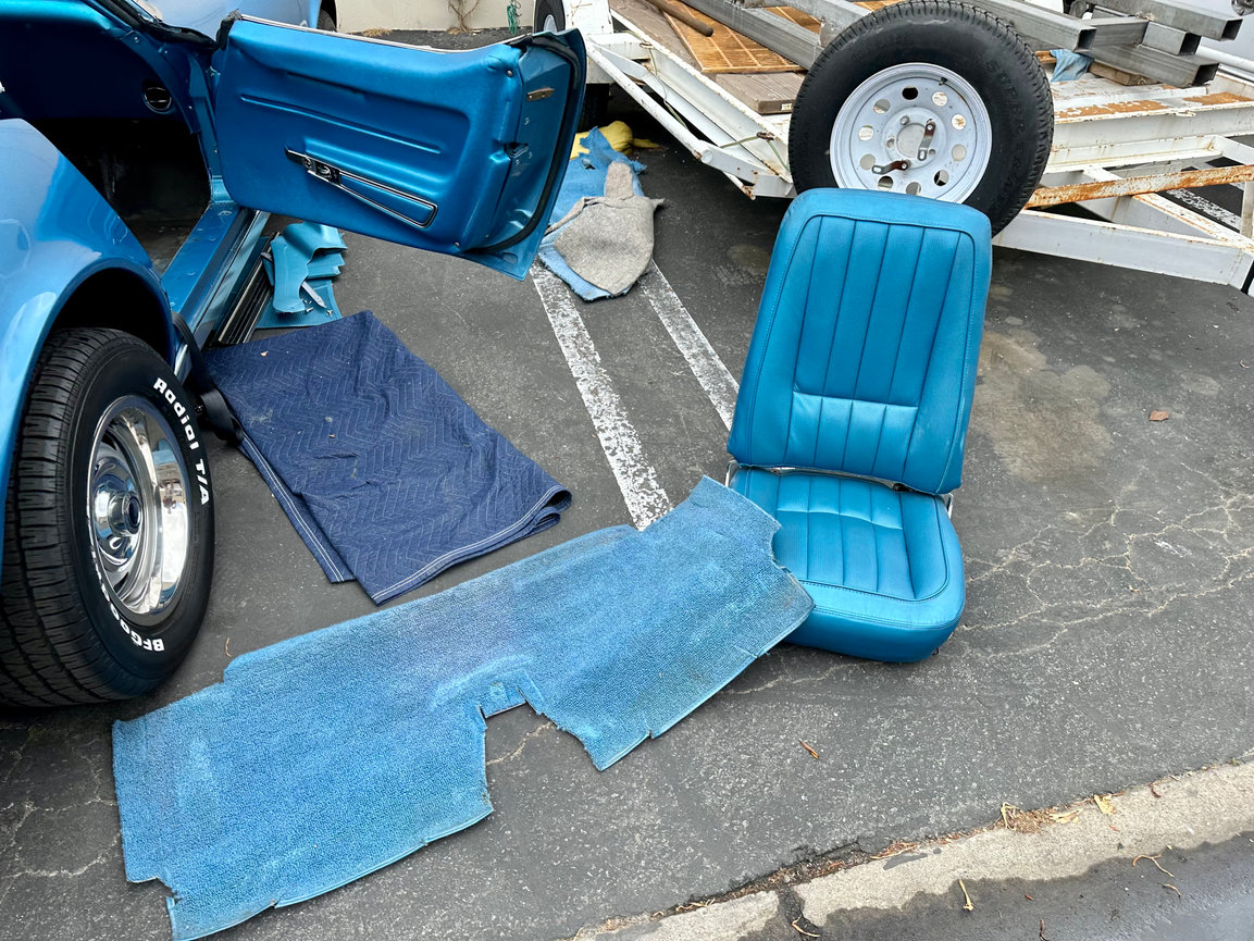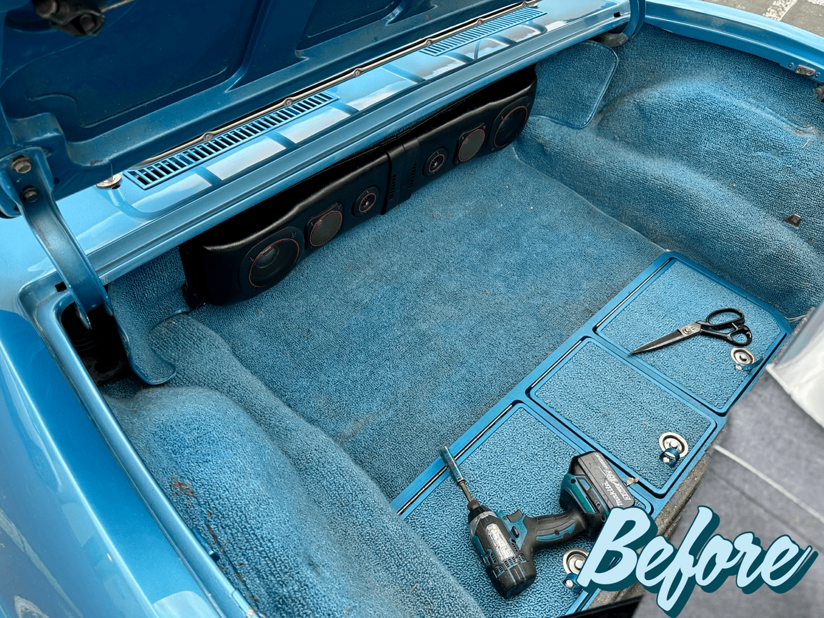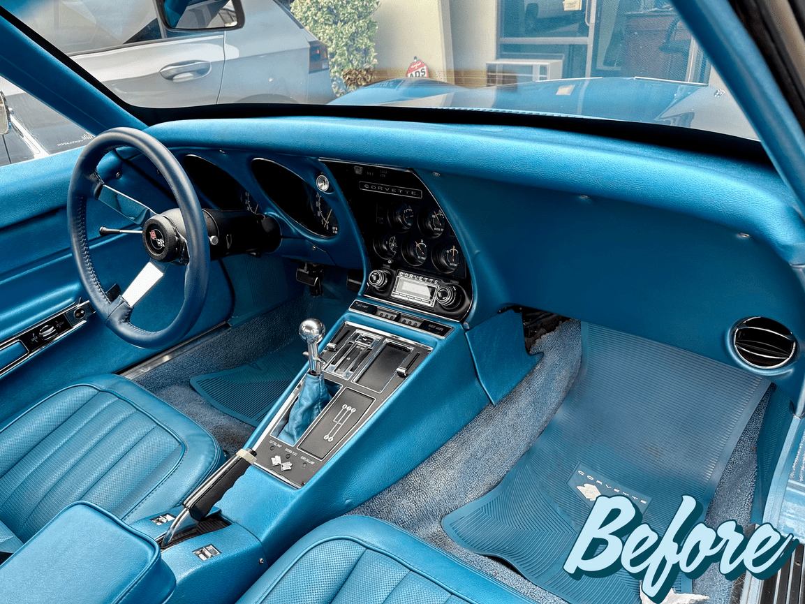 Preserving the Past, Refreshing the Ride! Take a peek behind the scenes as we upgrade the interior of this 1968 Corvette! Snapshots of the process of replacing the original worn and discolored carpet with a vibrant blue reproduction carpet kit from Auto Custom Carpets. The looped carpeting for the interior and trunk liner preserves this beauty’s original style and our attention to detail ensures a seamless and stylish upgrade