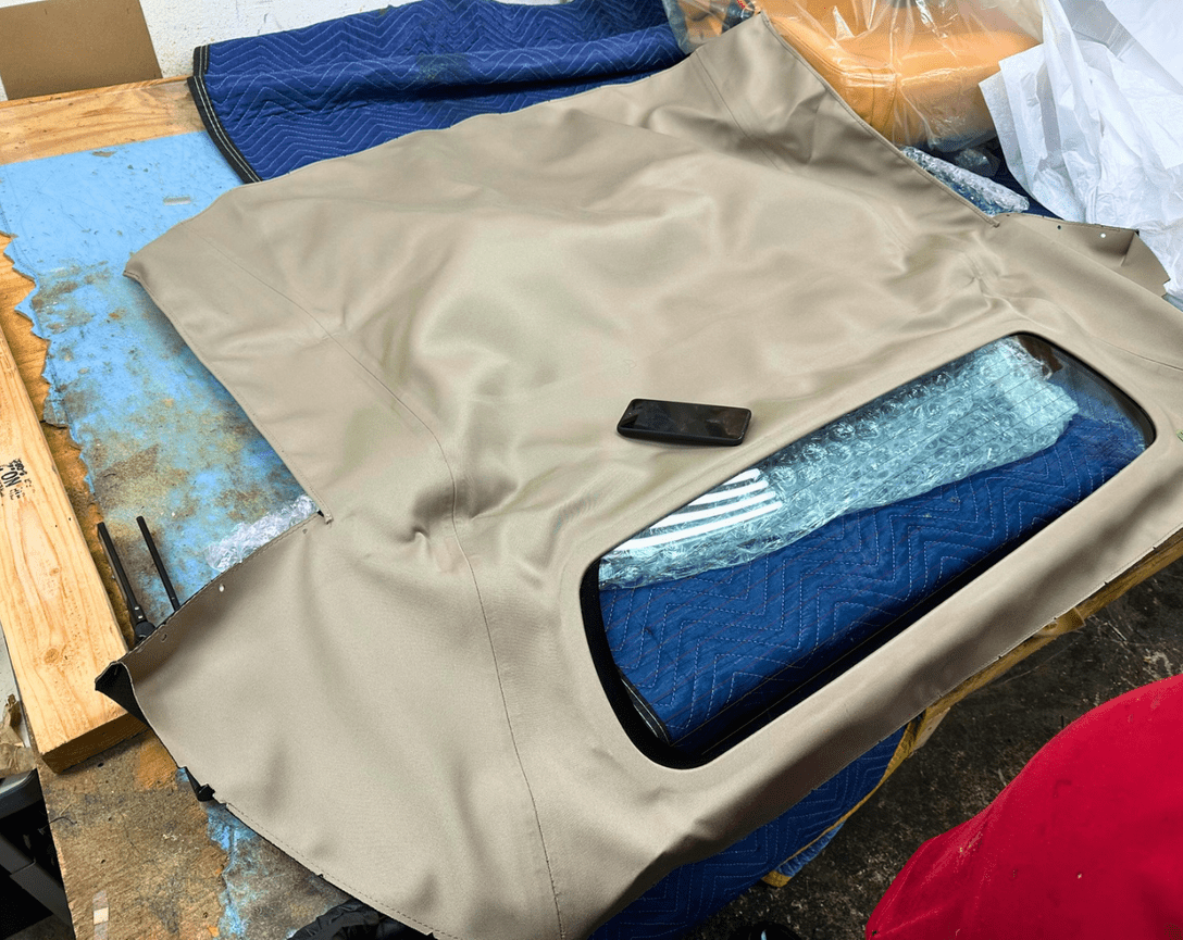 Installation of your convertible top will include replacement of worn or damaged components including cables. straps, pads and brackets to ensure the top functions properly and is properly fitted to the vehicle.