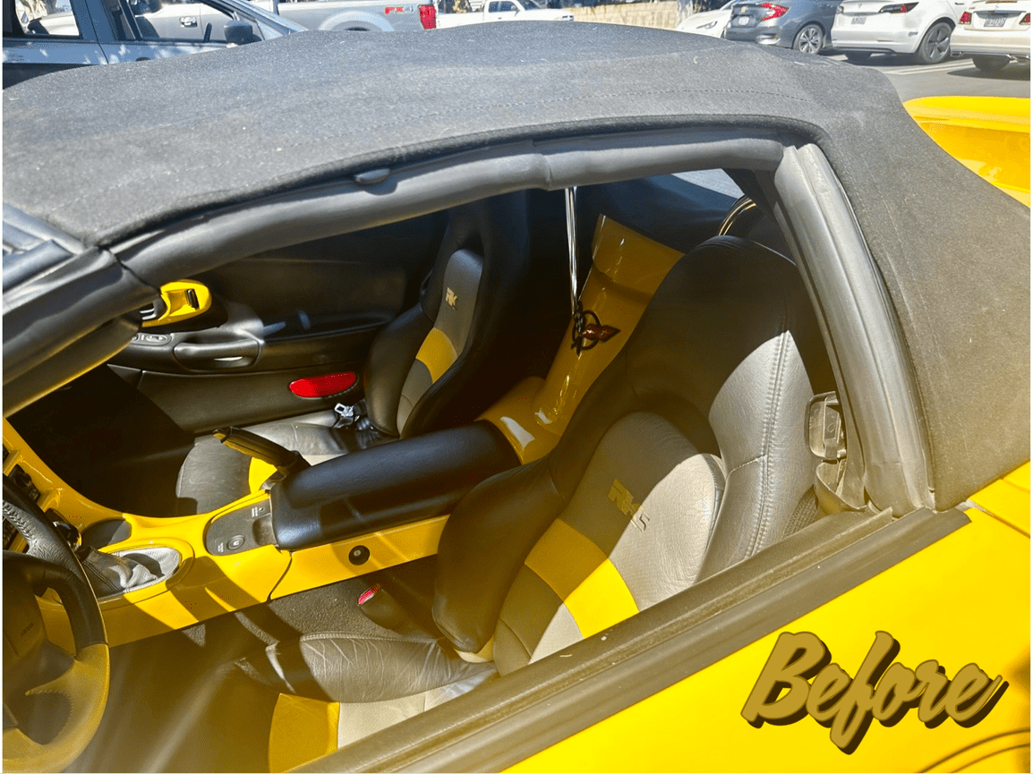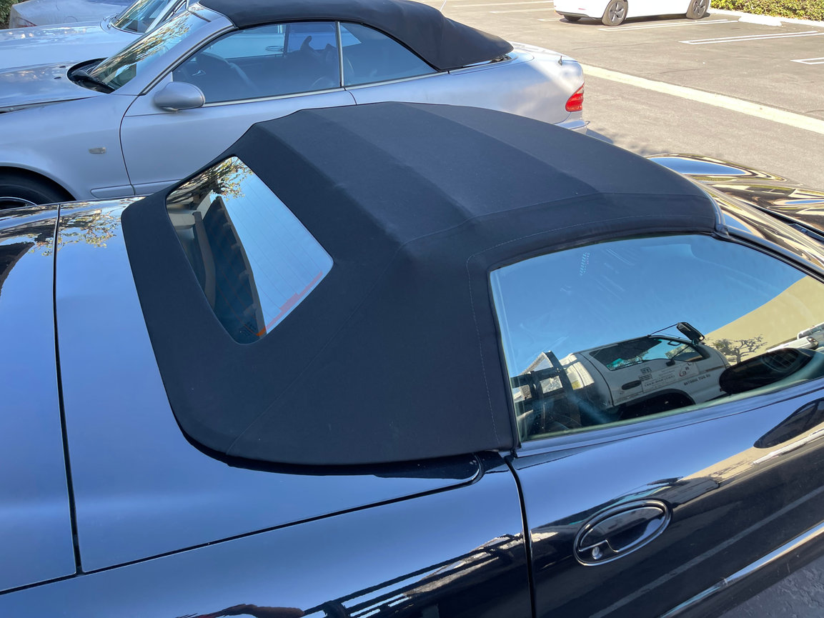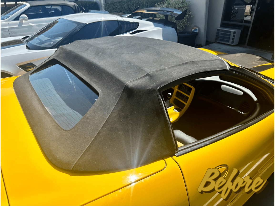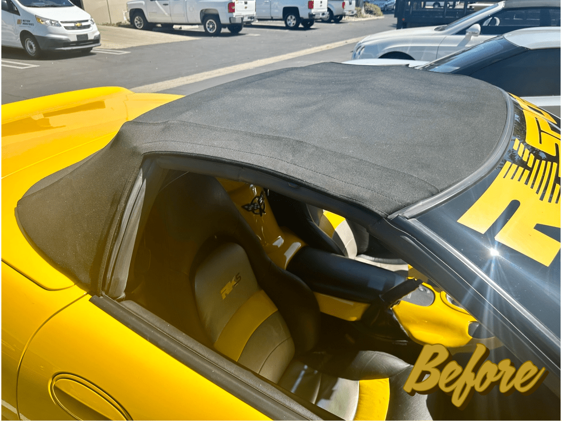 The black cloth top with glass rear window we installed on this C5 Corvette is a perfect match for the car's bright yellow paint job. It also provides excellent UV protection and water resistance.