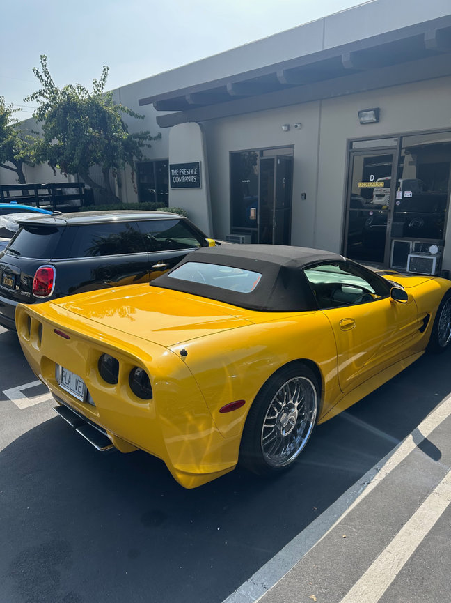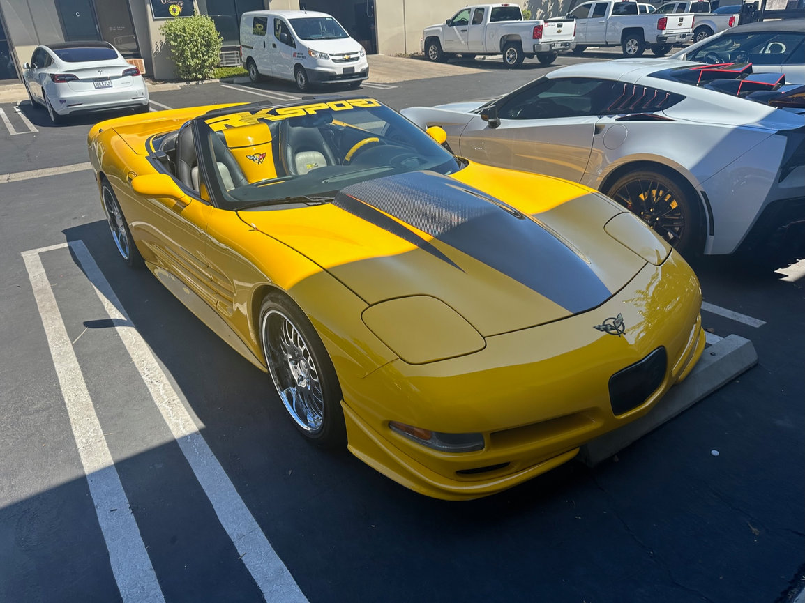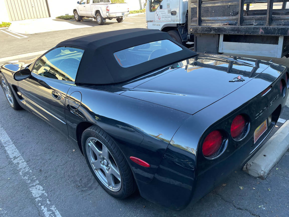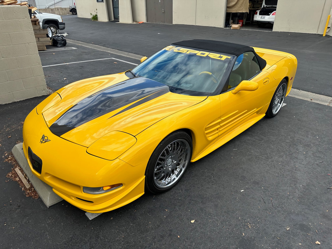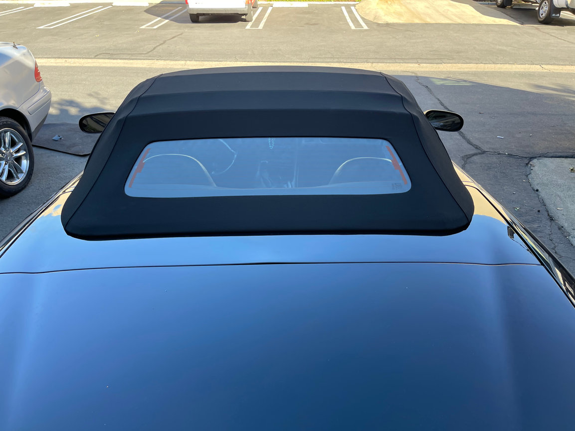 The black cloth top with glass rear window we installed on this C5 Corvette is a perfect match for the car's bright yellow paint job. It also provides excellent UV protection and water resistance.