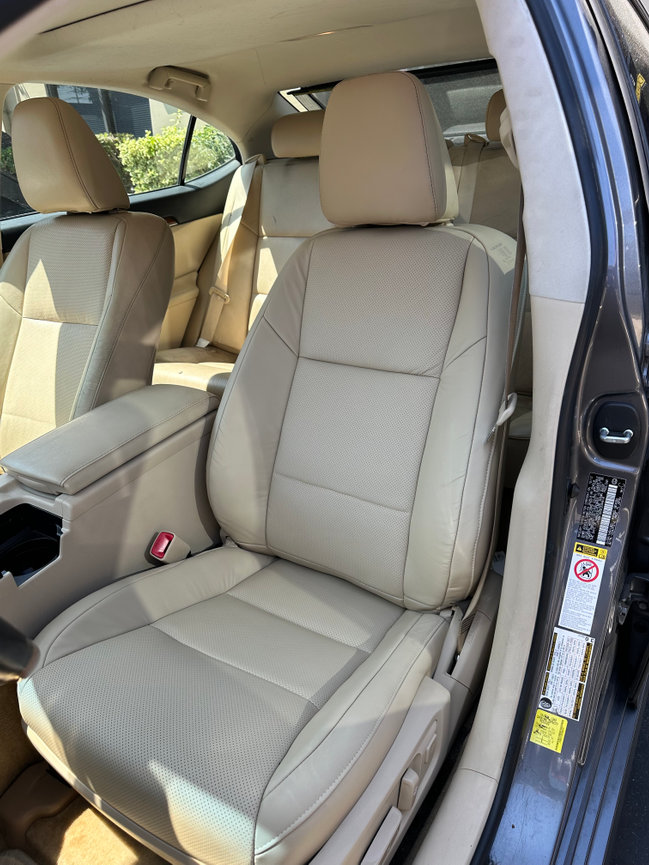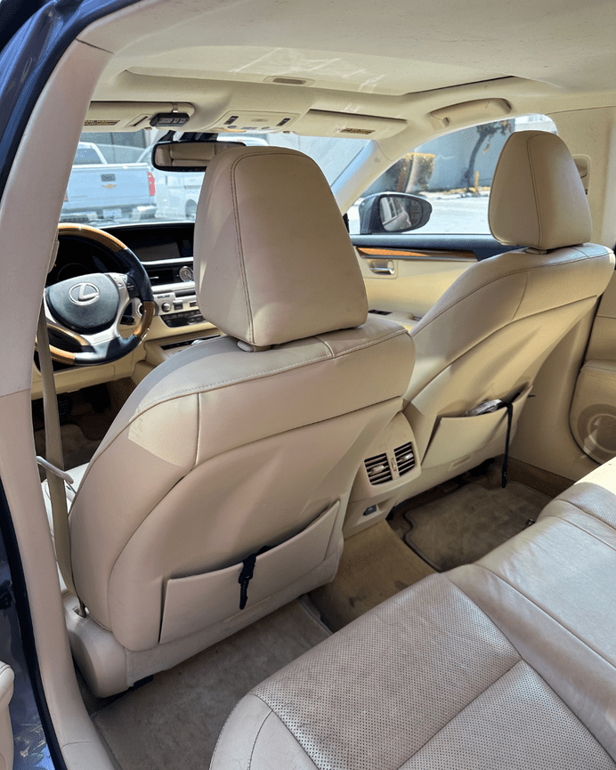 We recently had the pleasure of working on the interior of this white Lexus GV 470, restoring its elegance and style. The original upholstery was worn and discolored, but our expert team replaced the driver and passenger seat covers with factory-matched beige Napa leather and perforated beige leather inserts, creating a look that's both classic and sophisticated. We also reupholstered the center console in the same beige leather for a seamless finish.