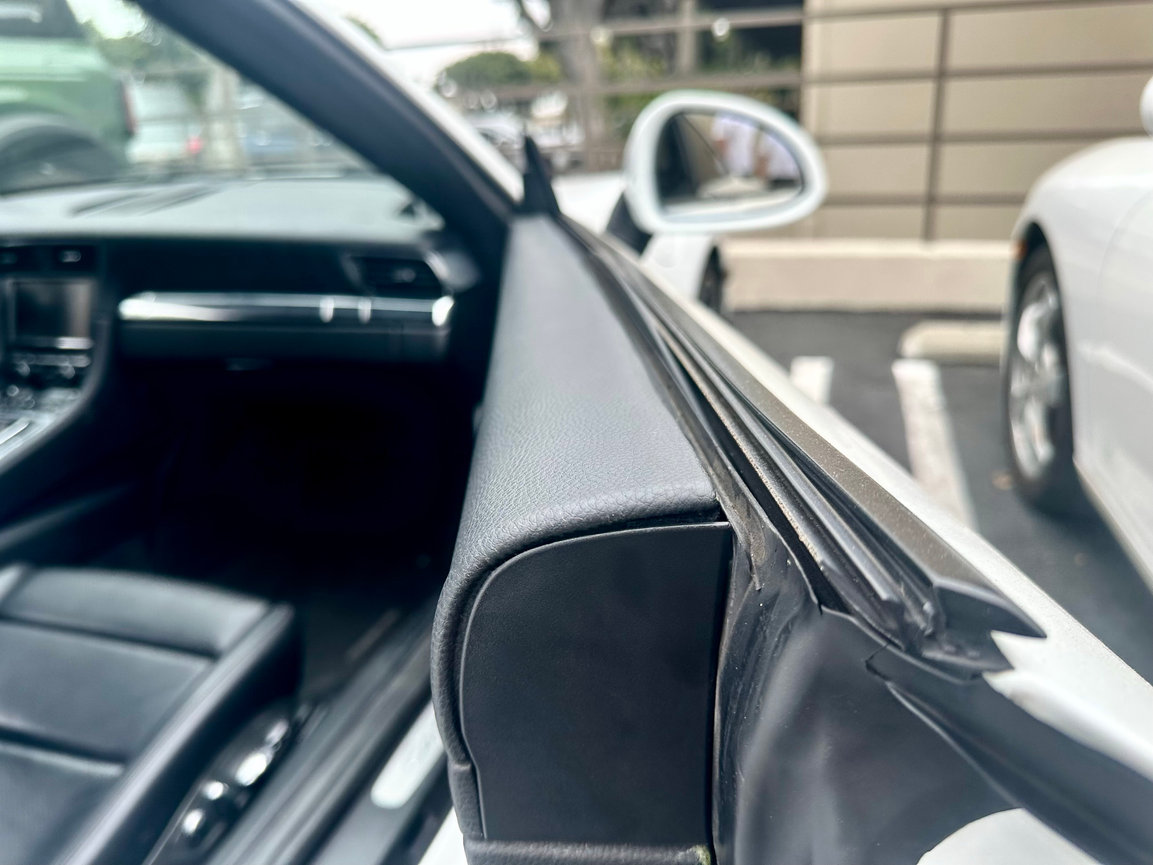 Customer's 911 arrived with badly warped and lifting leather door panels. Our specialized technique allowed us to perfectly reshape and re-mold the original materials to factory specification without using any replacement parts. This preserved the Porsche's authenticity while delivering flawless results indistinguishable from new.
